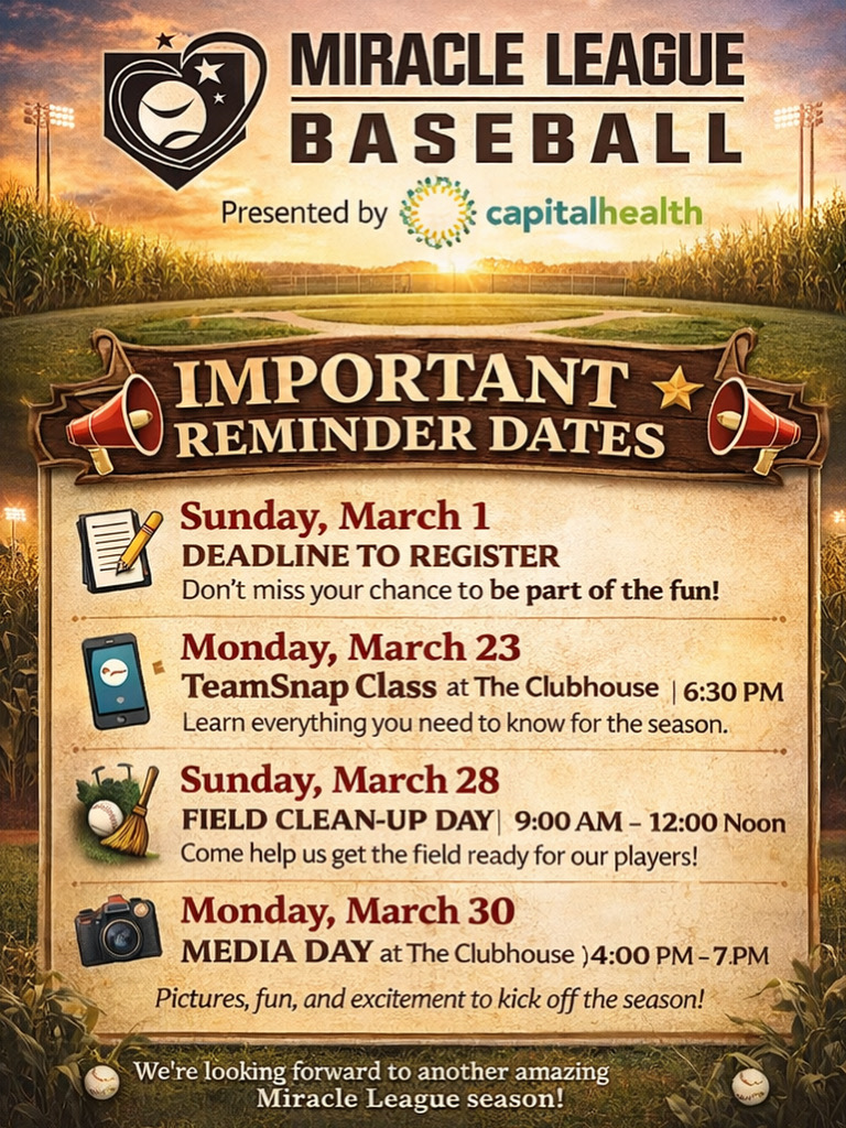 The year 2026 is here, and that means NOW is the time to sign up for all of your Miracle League of Mercer County programs.